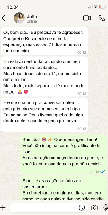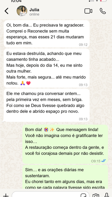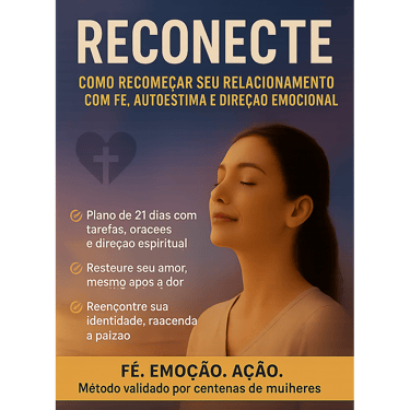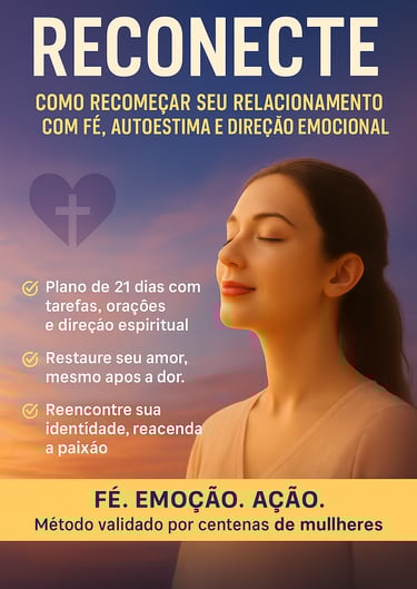 O Método Reconecte é o passo que faltava para você retomar sua força, restaurar seu relacionamento e viver o amor que você merece.